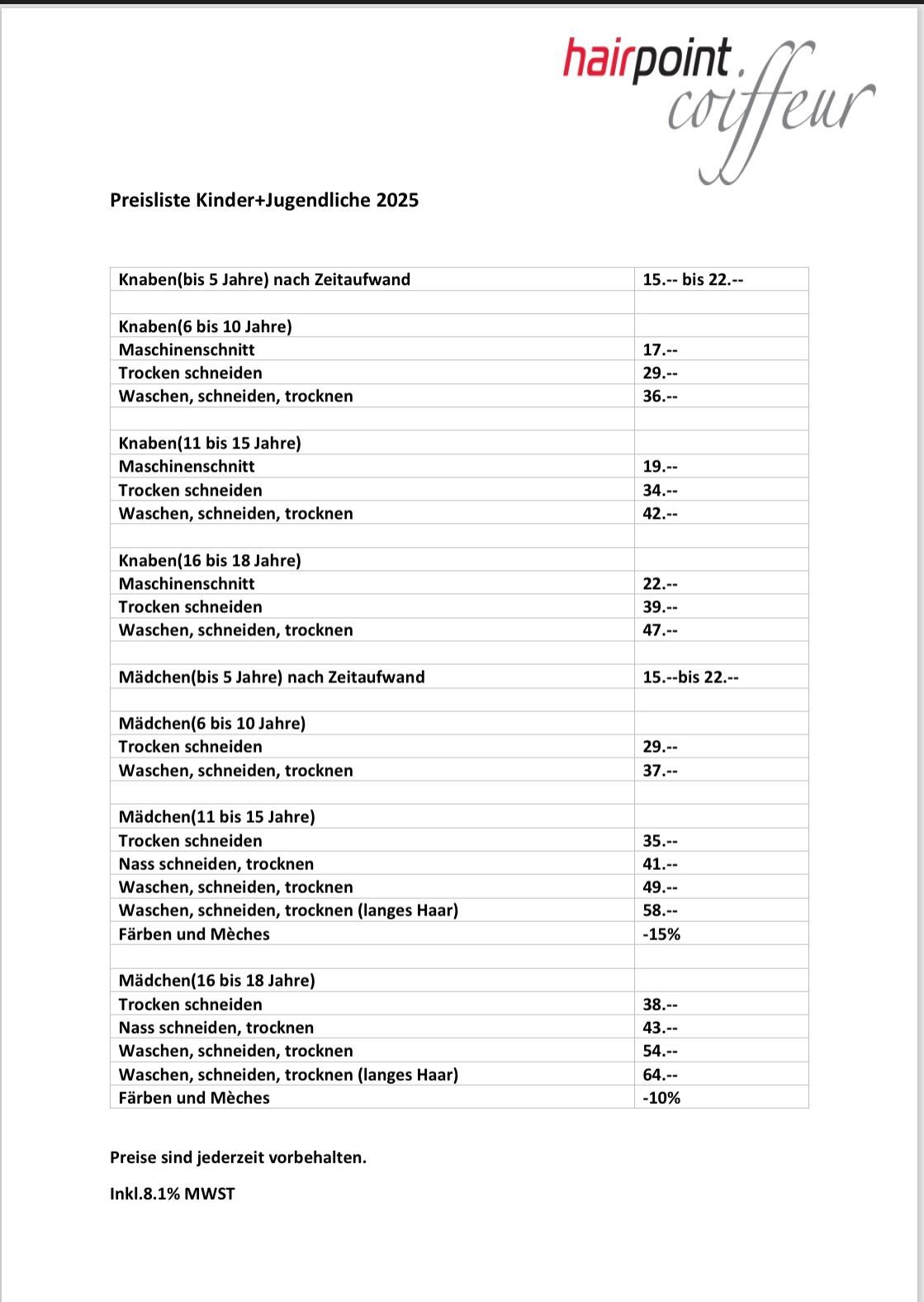Schöne und trendige Kinderhaarschnitte bei Hairpoint Coiffeur in Fislisbach